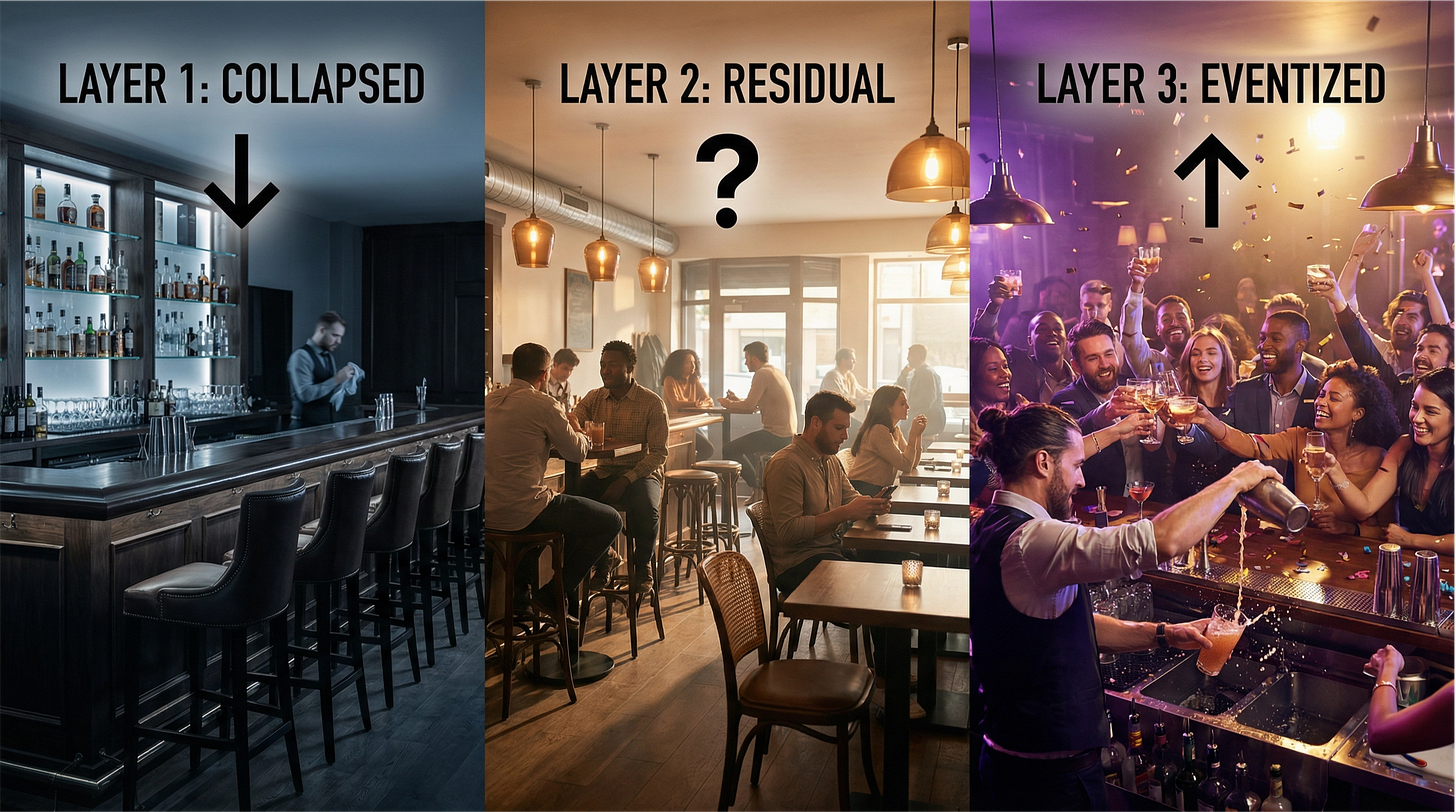 The answer depends on which layer you’re fighting for. And here’s the thing most operators get wrong: they try to fight for all three at once. They discount to save Layer 1. They staff up for Layer 2. They throw events at Layer 3. The result is a bar that’s exhausting to run and impossible to position. You end up optimizing for ghosts. The Tuesday regulars who aren’t coming back, the Thursday crowd that might or might not show.